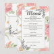 Guide your guests through your wedding feast with this elegant soft peach and pink watercolor floral menu card. Perfectly curated for spring and summer garden weddings, it features romantic delicate roses and sophisticated black line art accents. This customizable menu adds a timeless, botanical touch to your reception table setting and matches your floral wedding suite.