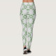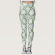 "Stylish and comfortable leggings featuring a clean and elegant geometric pattern. It showcases stylized floral or leaf-like motifs in a soft sage green/light green hue against a crisp white background. The subtle, symmetrical design evokes a feeling of calm, tranquility, and nature. Perfect for everyday wear, yoga, or lounging, these leggings add a minimalist yet chic and modern touch to your active or casual wear."