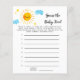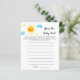 Um cartão de jogo "adivinhar a comida do bebê" com o tema da luz chá de fraldas, com ilustração aquosa de um sol com nuvens e estrelas. Os textos são editáveis. Um jogo perfeito para jogar durante o chá. aos hóspedes que experimentem as amostras de comidas de bebês e adivinhem os sabores.