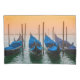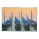 Um cenário pacífico ao lado do Palácio do Cachorro em Veneza, Itália, com quatro gondolas, todos juntos apontando para um belo pôr do sol.
