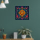 O charme de arte popular se misturava com o futurista solarpunk para iluminar sua parede. Esta radiante face solar num painel solar brilha com energia e alegria botânica.