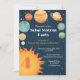 Planeta do sistema solar e convite ao aniversário de criança solar. Todos os planetas e um grande sol.