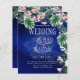 Tema moderno das folhas da ilha Real Azul tropical e das flores design. Os itens de coordenação com este design podem ser encontrados na coleção em anexo, que inclui convites para casamento, rsvp, salvar as datas, sinal de boas-vindas, adesivos, programas, menu, convites de chá de panela, janto de ensaio, convites para o conselho da nuestra, convites orçamentários e muito mais. Este tema de design é perfeito para o seu destino, praia, ilha tropical, casamento de verão. Design por marca registrada LeahG.