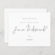 Solicitação de Bridesmaid Júnior de Script Preto Mínimo. Um alternativo de 4,5" x 5,6". Disponível em um STOCK CARD CARD STOCK SEMI GLOSS de 110 lb, que é a opção padrão (mais espesso para convites) Os envelopes são um extra opcional e são ligeiramente maiores que o tamanho do cartão. Estilo simples em preto clássico e branco para fazer esta pergunta importante. Junior Bridesmaid está em um script de na moda está no centro. As cores de texto e de fundo podem ser alteradas se você quiser se adequar melhor ao seu tema de casamento através da opção personalizar mais.
