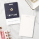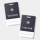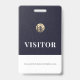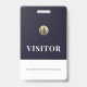 Acompanhe os visitantes e verifique a devolução de seus crachás com este crachá de visitante verde com um logotipo emblema metálico de selo de ouro escovado que pode ser personalizado para sua marca com um banner de texto personalizável. O design é atraente e profissional, perfeito para qualquer negócio ou evento.