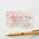 Solicitação de Livro para Convite de Chá de fraldas com fundo de mármore de rosa bonito e texto de cinza. Este poema fofo é um convite de chá de fraldas muito simples, solicitando livros em vez de cartas para o bebê a caminho, em breve muito educado e recém-nascido inteligente. Leia o cartão: Uma simples solicitação, se não for muito duro, por favor dê um livro em vez de um cartão. Pode ser um livro antigo ou novo, não importa desde que seja de você! Assine seu nome no cobrir e deixe um bilhete, compartilharemos com o bebê a mensagem que você escreveu.