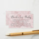 Solicitação de Livro para Convite de Chá de fraldas com fundo de mármore rosa bonito e texto de cinza. Este poema fofo é um convite de chá de fraldas muito simples, solicitando livros em vez de cartas para o bebê a caminho, em breve muito educado e recém-nascido inteligente. Leia o cartão: Uma simples solicitação, se não for muito duro, por favor dê um livro em vez de um cartão. Pode ser um livro antigo ou novo, não importa desde que seja de você! Assine seu nome no cobrir e deixe um bilhete, compartilharemos com o bebê a mensagem que você escreveu.