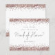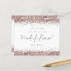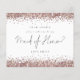 Solicitação de Madrinha de casamento de Script de Glitter Dourado do Rosa de Orçamento. Um alternativo de 4,5" x 5,6". Disponível em um STOCK CARD CARD STOCK SEMI GLOSS de 110 lb, que é a opção padrão (mais espesso para convites) que está em um script de conjunto de na moda está no centro. Uma borda de falso brilho em ouro de rosa está no topo e no fundo de cada lado.