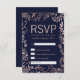 Rosa de ouro elegante, moderno e chic, e padrão de desenho floral azul de marinho azul de tendência, Cartões RSVP. Este design clássico e sofisticado é perfeito para qualquer evento de na moda e tendências, incluindo casamentos e ocasiões cotidianas.Personalize com sua própria mensagem na frente assim como um monograma personalizado na parte de trás. Todas as impressão de fotos.