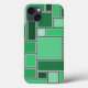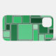 Esta capa de telefone tem um design Bauhaus de retângulos formados com linhas de cinza preenchidas com diferentes tons de verde.
