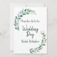 Este bonito "Shades de Verde - Convite para Casamento" foi projetado com uma coroa de folhas verdes claras e escuras, e texto de roteiro em branco e verde. Um convite suave e delicado com cartões de coleção de casamento. para personalizar, simplesmente insira o seu texto na nossa modelo fácil, passo a passo. Aproveite!