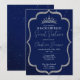Este elegante convite azul e dourado é para um tom de festa de aniversário azul doce 16. Você pode mudar o convite para qualquer idade.