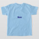Esta é uma camiseta do Filho azul-clara. A palavra Son está na camiseta em texto azul escuro. O filho está na frente e atrás da camiseta. A palavra está centrada. A camisa é feita de algodão.