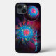 Uma imagem fractal, muito colorida e giratória aparece duas vezes. Uma vez sobreposta a um fundo espacial estrelado; uma segunda vez em uma esfera pequena cercada por uma aura brilhante. Talvez uma sonda lançada de uma nave-mãe, ou um ovo cósmico. Adicione seu próprio texto.