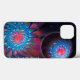Uma imagem fractal, muito colorida e giratória aparece duas vezes. Uma vez sobreposta a um fundo espacial estrelado; uma segunda vez em uma esfera pequena cercada por uma aura brilhante. Talvez uma sonda lançada de uma nave-mãe, ou um ovo cósmico. Adicione seu próprio texto.