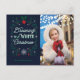 Um Modelo Elegante e Moderno Postcard apresenta um fundo de neve, flocos de neve, sinos de trenó, fita, ornamentação florescente e o tema da terra botânica de galhos de pinheiro para representar o melhor dos feriados. É inspirado pelas canções de Natal do passado natalício da letra "Dreaming of a White Christmas" e é também uma forma excelente de expressar o Holiday Cheer por aqueles que você gosta. Criado com uma letra e ilustração desenhadas para aqueles que adoram Estilos Únicos e Novidade! Desenhado por Katrina Sutton.
