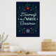 Um Poster Elegante e Moderno apresenta um fundo de neve, flocos de neve, sinos de trenó, fita, ornamentação florescente e tema de garagem botânica de galhos de pinheiro para representar o melhor dos feriados. É inspirado pelas canções de Natal do passado natalício da letra "Dreaming of a White Christmas" e é também uma forma excelente de expressar o Holiday Cheer por aqueles que você gosta. Criado com uma letra e ilustração desenhadas para aqueles que adoram Estilos Únicos e Novidade! Desenhado por Katrina Sutton.