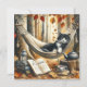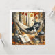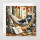 Este legal gráfico animal mostra um gato de smoking preto e branco dormindo em uma rede e sonhando com a aventura. Ao lado desse adorável gatinho está um livro aberto e ao fundo há árvores florestais do outono. Faz excelente aniversário, Natal ou outro presente de feriado para amantes do gatinho!