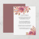 Convites elegantes e românticos de casamento outono em cores clássicas de outono apresentam cor d'água outono e flores deixa enquadrar seus detalhes de convidados em letras clássicas fora do preto. Cartões invertendo a contrastar burgundy pálida. Considere detalhes como acomodações de hotel, códigos de grupo, transporte, instruções, informações de recepção de boas-vindas e seu endereço de site de casamento. Você pode até fazer upload de um mapa para o lado inverso usando a função Personalizar. Concebido para corresponder à nossa coleção de convites para o casamento do Autumn Dream.