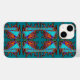 Cores vibrantes e padrões fractais, um sentimento tribal e um fundo da nova cor de tendência "Biscay Bay". Sonho de borboletas Emblem tapeçaria digital.
