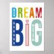 Sonhe grande arte com elementos escandinavos. Impressão de aspas inspiradoras para decoração de quartos para crianças.