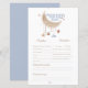 Os cartões "Dreamy Over the Moon", azuis, Predição e Conselhos, apresentam um design celeste com lua crescente e charmes pendurados como estrelas, nuvens, corações e arco-íris. Os tons suaves e neutros criam uma sensação sonhadora, caprichosa, perfeita para um evento neutro em termos de gênero. Os convidados podem fazer previsões sobre o futuro do bebê e oferecer conselhos aos pais, acrescentando um elemento pessoal e interativo à celebração. Estas cartas complementam o tema de forma magnífica, fazer para uma manutenção memorável para os pais tesourarem.