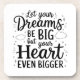 Porta copos inspiracional com a frase "Deixe seus sonhos serem grandes, mas seu coração ainda maior".