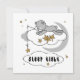 Este design bonito apresenta um ursinho de pelúcia deitado em uma nuvem fofa enquanto pesca com estrelas douradas e o texto "apertado do sono" na tipografia popular moderna #urso #ursinho #fofo #sono #otpografia #bebê #bebe #bebe #cartões #cartões #stationery #bedroter #blackandwhite #gold #moon
