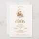 Este design de convite é perfeito para um tema de chá de fraldas de ursos de pelúcia, elegante, sonolento e neutro em gênero! O ursinho de pelúcia sonolento na lua é uma imagem de uma pintura aquosa. As cores desse convite incluem tons de marrom e o texto está em marrom escuro.