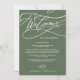 Esta refinada carta de boas-vindas e itinerário do casamento verde da Coleção Sophia apresenta caligrafia varrida em branco nítido. Elegante, mas ao ar livre — é ideal para jardins, vinhedos ou casamentos florestais com um sentimento natural e romântico. A frente da carta apresenta uma carta de boas-vindas e a parte de trás da carta apresenta o itinerário do casamento. Estas notas são perfeitas para casamentos de destino e bolsas de boas-vindas de hóspedes.