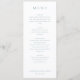 This elegant wedding menu features a clean, vertical layout with ample white space, creating a sophisticated and refined atmosphere. The color palette is minimalistic, dominated by soft off-white with crisp black text that stands out clearly. Digital typography is used throughout, with bold serif fonts for section headers and italicized fonts for the menu items, ensuring readability and an understated elegance. Small centered dots subtly separate each section, adding visual interest without distraction. Perfect for formal occasions, this design emphasizes clarity and simplicity, making it ideal for couples seeking a classic and timeless look for their special day.