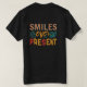 A t-shirt apresenta a frase "Smile Ever Present" num design de multicores vibrante. Cada palavra transita suavemente para a próxima, criando um espectro de matizes alegres. O texto centra-se numa camiseta branca, fazer-a no ponto focal claro e deixa brilhar a mensagem positiva.