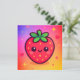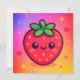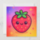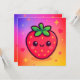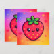 Este adorável design apresenta um morango no estilo de animação de solteiro com um rosto alegre, bochechas rosadas e olhos expressivos. O morango é tocado com folhas verdes vibrantes e pontilhado com sementes amarelas, colocadas sobre um fundo de gradiente sonhador que transita de rosa macio para roxo e amarelo. Corações dispersos, estrelas e pontos acrescentam uma atmosfera balbuciosa e lúdica, fazer a composição global doce e visualmente deliciosa.