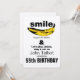 Arte gráfica: Banana orientada para formar um sorriso + texto pequeno entre parênteses: (é boa para a saúde). Perfeito para quem sorri ano após ano. Design no convite de cartão plano arredondado com textos para a 55ª Festa de aniversário personalizar. Você pode facilmente alterar o texto (fonte, cor, tamanho e posição) clicando no botão personalizar. Este convite é apresentado com um documento natural "Premium Kraft" e eco-amigável, mas você pode mudar essa opção. Parceiro de aniversário Salve a data, os livros de convidados de aniversário (cobrir de duro e caderno espiral), guardanapo de papel de aniversário, placa de papel e muito mais...