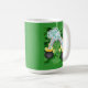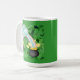 Queira ter a "sorte" do diário irlandês, não apenas o dia de St Patrick? Então está aqui uma grande caneca de café com este término do motivo do arco-íris em uns potes de ouro em um fundo do trevo. Uma grande maneira de dizer a "parte superior 'O a manhã a você. Você não tem que ser irlandês ter a sorte do irlandês!