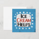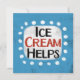 "O Sorvete ajuda" é um design de texto divertido com uma forma de sotaque branca cercado por pontos brancos texturizados.