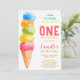 Este convite bonito apresenta um cone de sorvete aquoso em cores arco-íris.