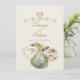 As maravilhosas conchas de cor d'água de arte pintando convite de casamento. Simples convite de casamento clássico e romântico em creme de marfim e matizes ouros. design de casamento clássico do conjunto de papéis de carta de casamento da arte dos conchas. Edite este convite com seus nomes, datas, texto e adicione suas iniciais ao coração girando. Perfeito para um casamento na praia ou no oceano. Inteiramente pintada e desenhada pela artista e designer Sarah Trett.