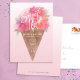 Este doce convite de aniversário 16 apresenta uma ilustração aquosa de um cone de sorvete cheio de flores. Este bonito convite de aniversário inclui um fundo cor-de-rosa, flores delicadas, cor-de-rosa e roxas, em um cone de sorvete de água, juntamente com um roteiro divertido lendo "Festa de aniversário" e detalhes personalizáveis de festas no cone. A parte traseira inclui um plano de fundo cor-de-rosa correspondente.
