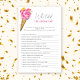 Este chá de panela temático é decorado com florais de aquarela e um cone de sorvete. O texto diz: "Ela foi enfiada!" na tipografia de script rosa-na moda. Sorvete de aquarelas com flores e frutas.
