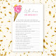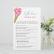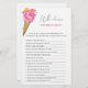 Este chuveiro de noiva temático de sorvete é decorado com flores em aquarela e um cone de sorvete. O texto diz "Ela foi escolhida!" em tipografia rosa estilosa. Sorvete em aquarela com flores e frutas.