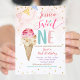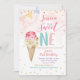 Sorvete rosa Doce de 1 Aniversário Festa de sorvete de Menina de Convite