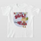 Uma menina adorável com cabelo louro e um vestido vermelho, um cupcake, balões, e texto que diz "Garota de Aniversário, tenho 4 anos!" em Camisetas de 4 anos, fatos-chave, canecas, ímanes, cartões, adesivos, sacos de presente de aniversário, e muito mais!