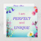 Belo poster de afirmação floral "Sou perfeito e único". Você pode personalizá-lo adicionando seu próprio texto no lado branco de um cartão.