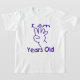 Esta camisa é para uma criança de quatro anos. A criança não precisa mais dizer a idade, apenas vista a camisa. Esta camisa faria um presente maravilhoso para a criança completar quatro anos. A cor do design é roxa.