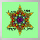 Estrela multicolorida de David em um padrão Celta de trabalho de nós e as palavras "Eu sou um Judeu"/ Ani Yehudi em inglês e hebraico