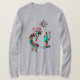 Esta é uma camiseta de longa manga de Kokopelli "Um dos tipos"! Ele apresenta um Kokopelli sudoeste em Turquoise, Laranja e Negro tocando flauta e dançando em torno de um cacto debaixo do sol!
