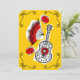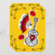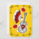Design de Whimsical desenhado em estilo retrô, com lembranças de um feriado espanhol; uma guitarra de ferro em formas brutas, um fã de legado e uma rosa vermelha. Um design personalizável em preto, branco, vermelho e ouro amarelo para você personalizar com seu próprio texto, imagens e ideias. Uma imagem de arte digital original.