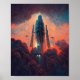 Spaceship Liftoff Sci-Fi Art Poster