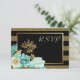 Este elegante cartão RSVP combina moderno e chic com o tradicional floral de casamento. Apresenta uma imagem impressionante da menta e das flores brancas coloridas, com um embelezamento dourado no fundo. A imagem é colocada sobre um quadro de ouro brilhante. Seu texto personalizado está em ouro claro à direita. Tudo é colocado sobre um fundo preto dramático e falso de faixa de ouro brilhante. A parte traseira da placa é branca sólida para facilitar a marcação do respondente. Elegante, moda, e apropriado para casamentos em qualquer estação! * Observe que o plano de fundo está impresso no cartão e não contém nenhum brilho real.